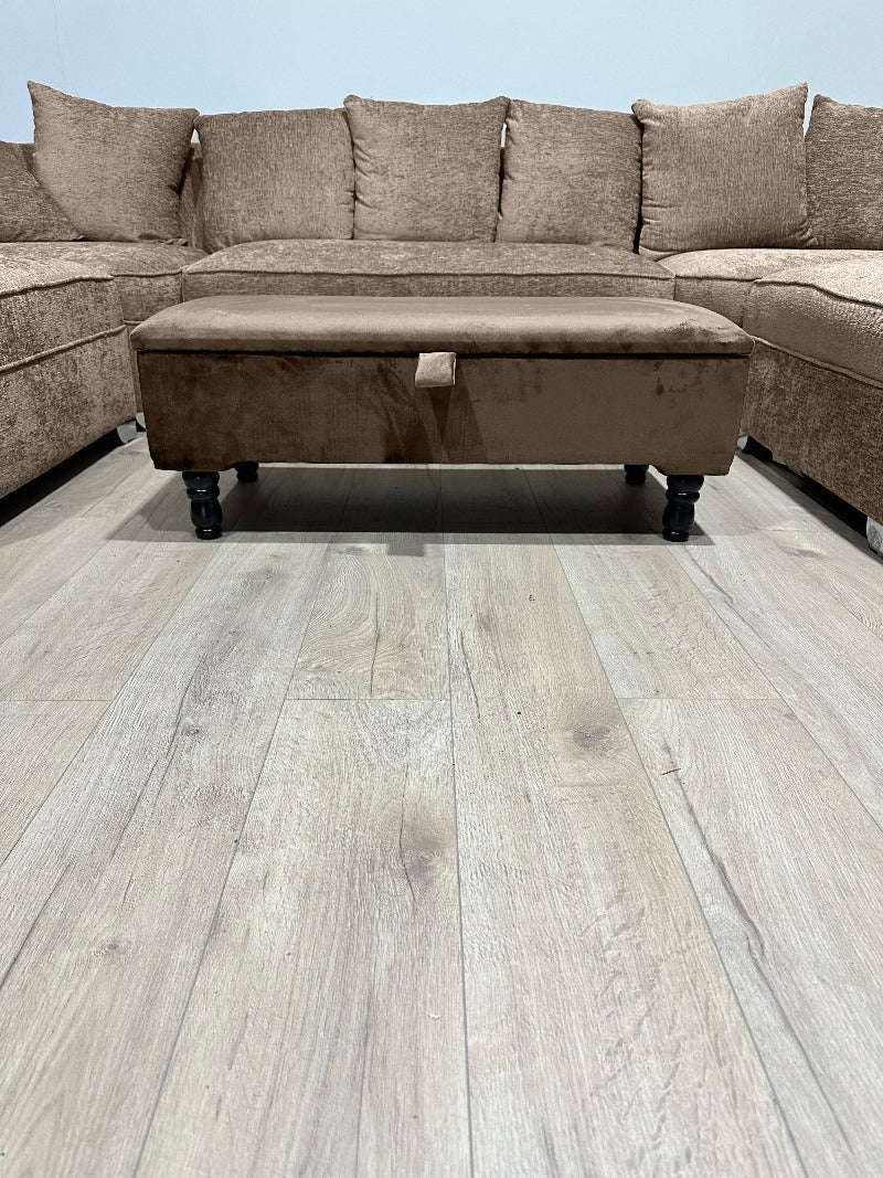 Our stylish, versatile tufted ottoman/bench footstool with storage blends modern-day function with traditional style. The stylish Chesterfield button-tufted exterior and black wooden legs with a gold cap finish provide an appealing multi-purpose addition to your home. Our brown chenille fabric storage ottoman offers an easy and stylish storage solution for items you want close but out of sight. The classic brown chenille fabric upholstery makes this living room footstool storage bench suitable as a coffee table ottoman, or as extra seating in a study. It’s easy maintain!