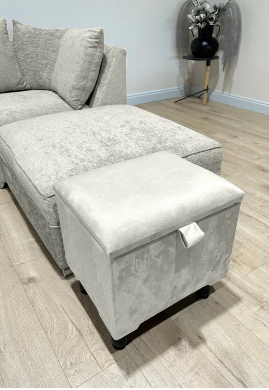 - small storage ottoman and 4 wooden legs.